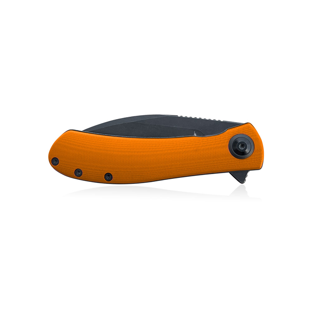 - Handle: Orange G10 handle, stainless steel liners and backspacer, Deep Carry / Tip-Up clip