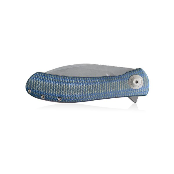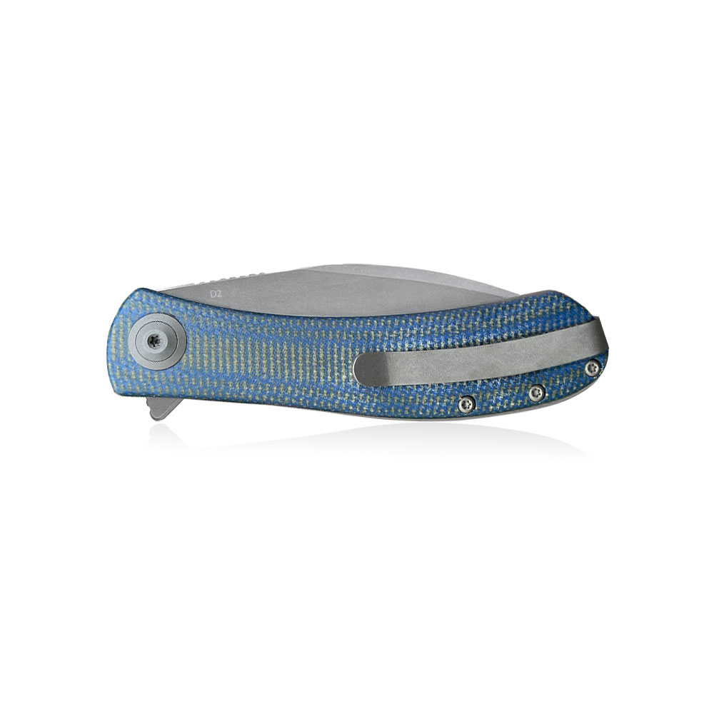 - Handle: Blue micarta handle (handle scales in blue-grey micarta with distressed jeans effect), stainless steel liners and backspacer, Deep Carry / Tip-Up clip
