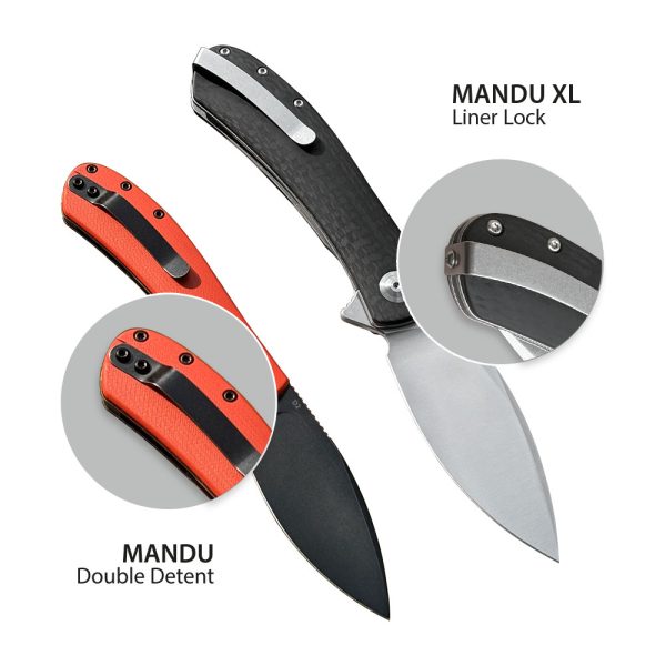 Mandu XL is the folding version of Trollsky’s popular fixed-blade design. It features a Liner Lock mechanism and a Deep Carry clip for discreet pocket carry. The wide, leaf-shaped blade and comfortable handle make this knife perfect for everyday use. Compared to the double detent Mandu, the XL version is larger (8.46” vs. 7.08”), offering more power and strength for daily tasks like opening packages, preparing snacks, or even outdoor use.