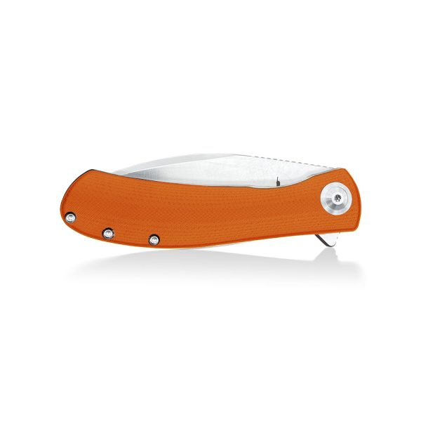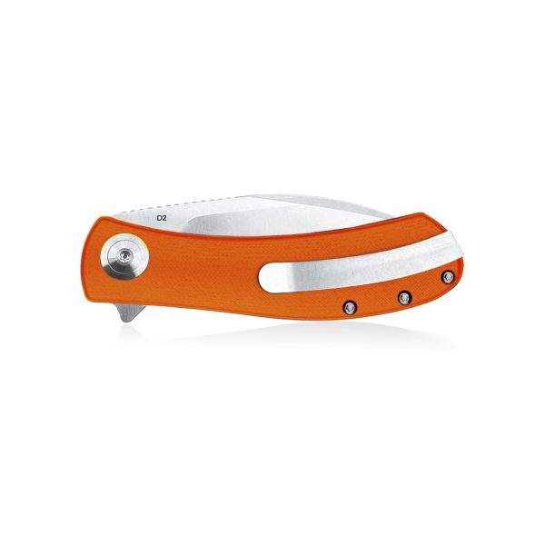 - Handle: Orange G10 handle, stainless steel liners and backspacer, Deep Carry / Tip-Up clip