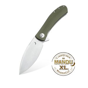 The Mandu XL opens effortlessly via a flipper mechanism, with ceramic ball bearings ensuring smooth action. The liner lock secures the blade when open, preventing accidental closure. The knife is easy to operate one-handed, placing it among modern folding knives.