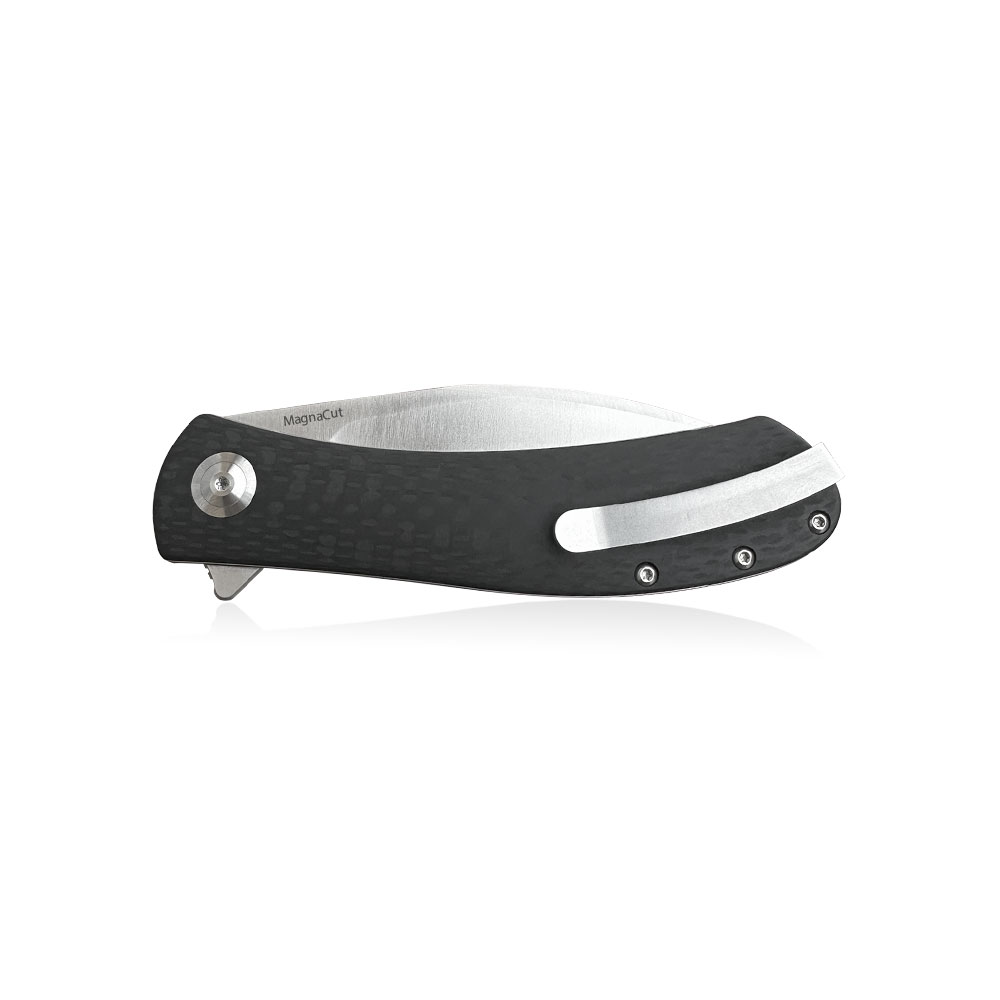 - Steel: MagnaCut steel (61-63 HRC), satin finish