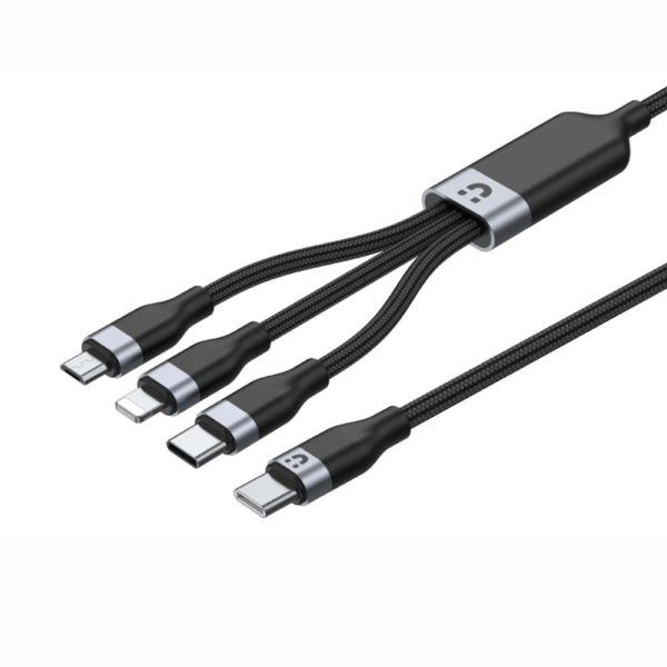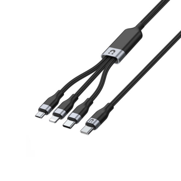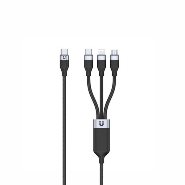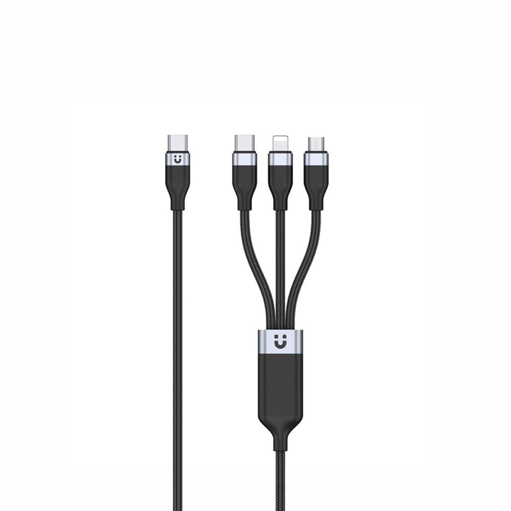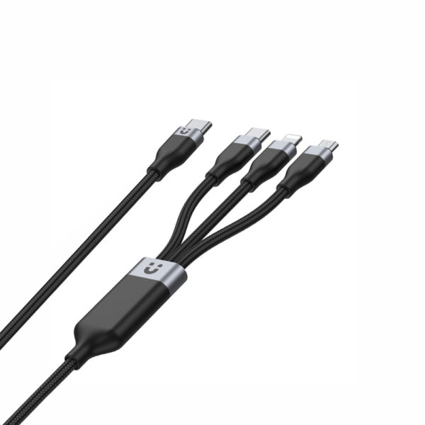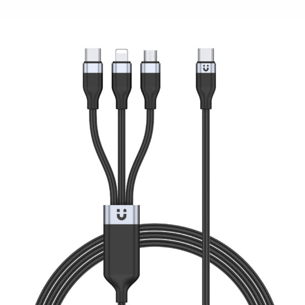 Unitek USB-C Charging Cable 3 in 1 Black has a USB-C input and three outputs for USB-C, microUSB and Lightning that can be used at the same time.