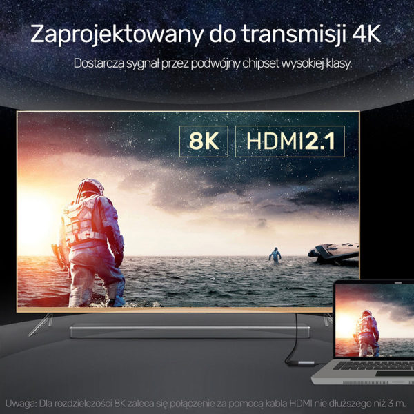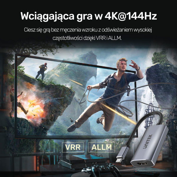 Adapter Unitek USB-C na HDMI 2.1 8K will allow you to connect a larger monitor, for example, to watch a movie on a TV from a computer or a game on a large screen, but it can also provide an additional monitor for multitasking.
