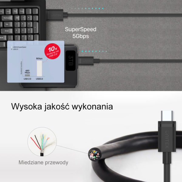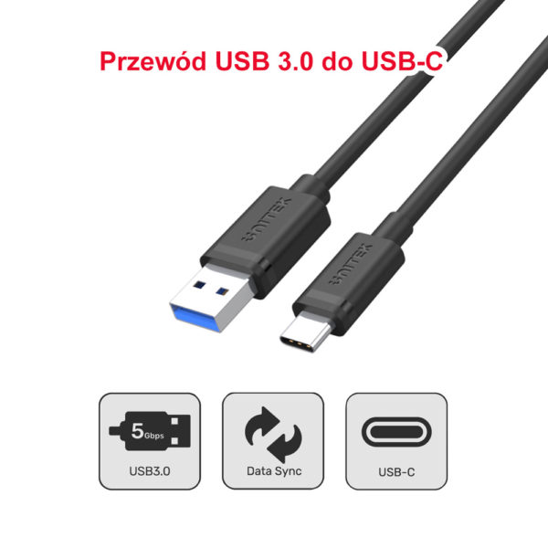 Unitek USB Cable 3.1 Typ A-Typ C M-M 0,25m conducts up to 2A and data transfer speed is 5 Gbps.