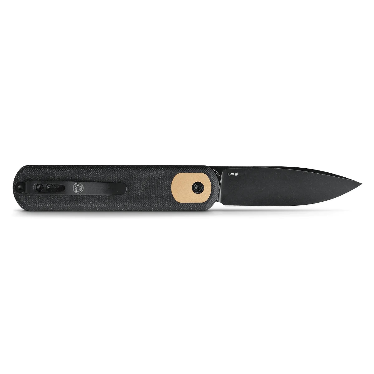 Corgi to mały nóż składany z ostrzem o profilu drop point z ostrzem fałszywym poprawiającym właściwości penetrujące całości. Corgi to subtelny folder, który po złożeniu prezentuje się równie symetrycznie jak i przed. Folder wyróżnia możliwość otwarcia górną płetwą i dolną płetwą jako front flipper i back flipper lub za sprawę blokady Trek Lock.