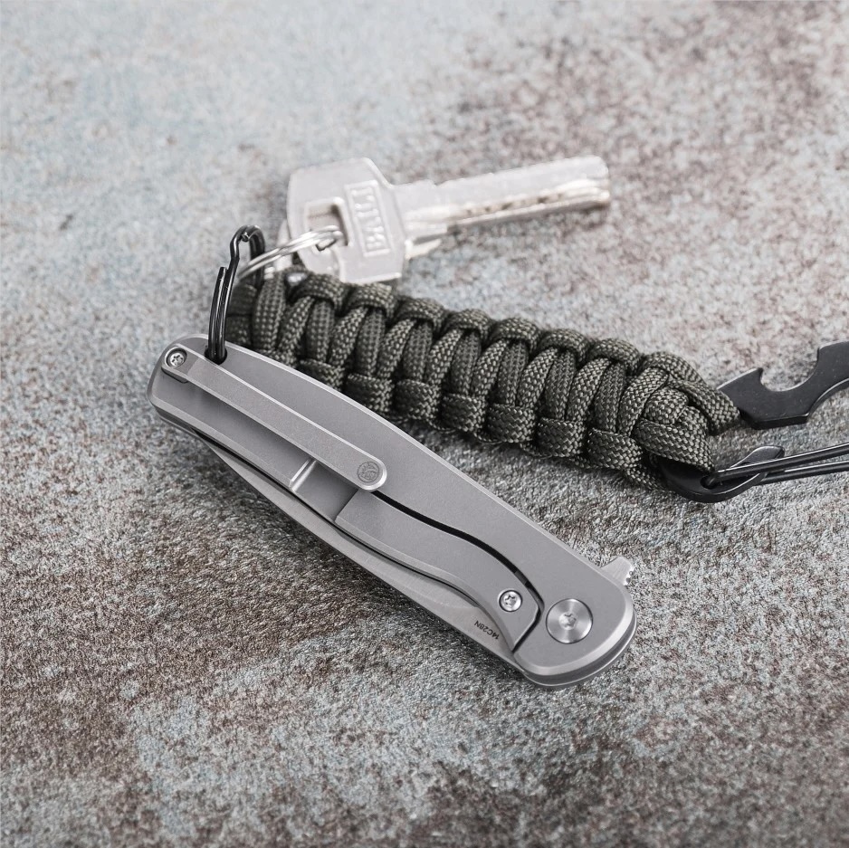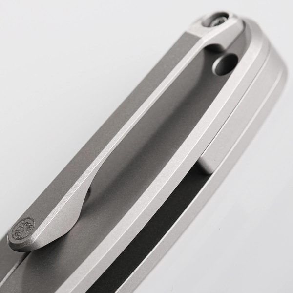 Tytanowy klips mocujący umiejscowiony w tylnej części rękojeści zapewnia stabilne przenoszenie w kieszeni, zamocowanie w plecaku, sakwie, nerce itd. Klips wykonano z tytanu i zamontowano go w pozycji tip-up (wierzchołek ostrza skierowany do góry w momencie zaczepienia noża klipsem).