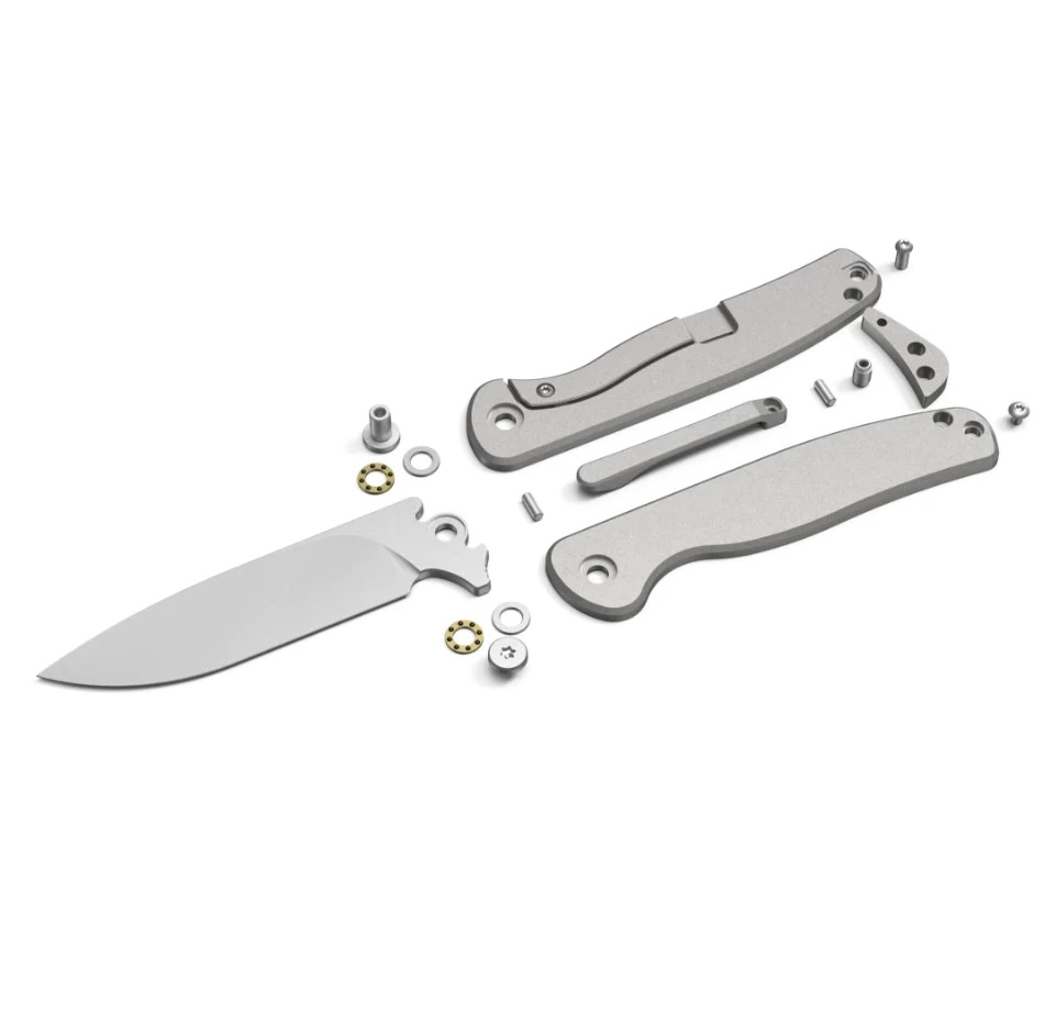 Okładziny rękojeści wykonane zostały z lekkiego i wytrzymałego tytanu. Zarówno korpus jak i backspacer spajający konstrukcję wykonano z tego materiału.