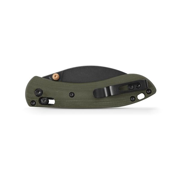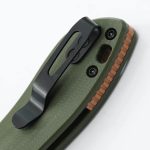 Stalowy klips mocujący umiejscowiony w tylnej części rękojeści zapewnia stabilne przenoszenie w kieszeni, zamocowanie w plecaku, sakwie, nerce itd. Klips wykonano ze stali nierdzewnej i zamontowano go w pozycji tip-up (wierzchołek ostrza skierowany do góry w momencie zaczepienia noża klipsem). Klips można zamontować na wybranej stronie noża, co w połączeniu ze sposobem otwierania kołkiem i blokadą czyni nóż przyjaznym dla użytkowników lewo i praworęcznych.