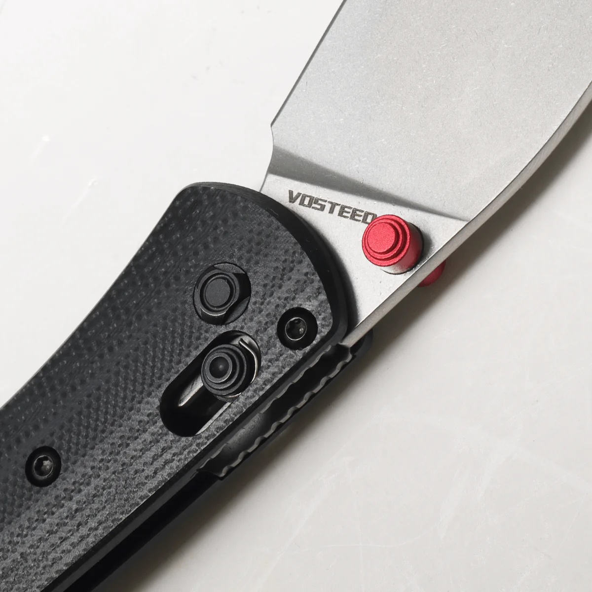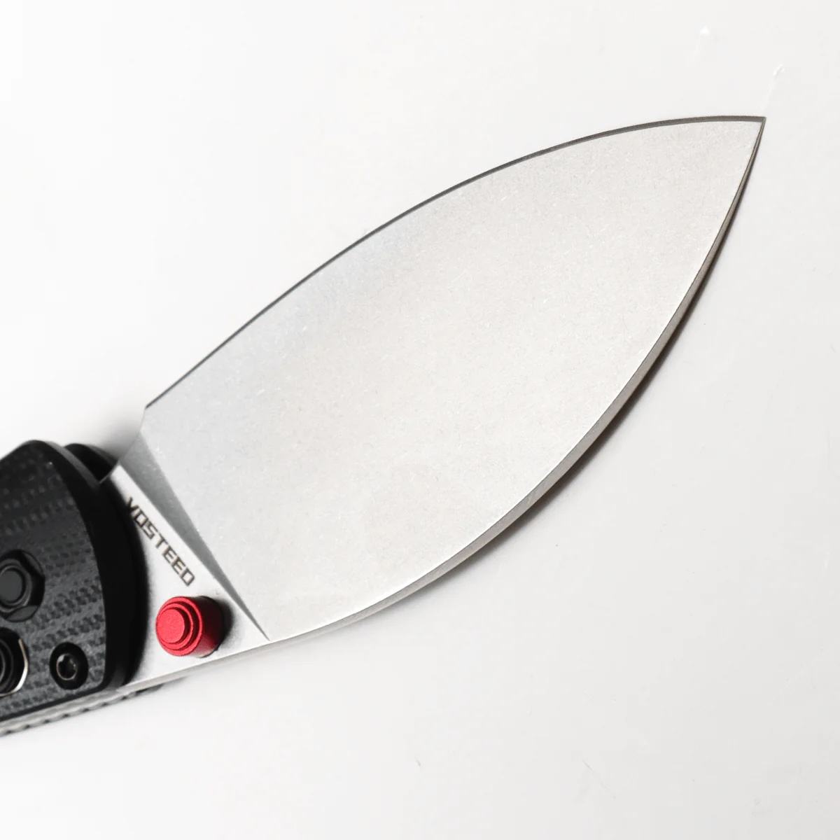 - Zawartość opakowania: nóż, 2 x zapasowa sprężyna blokady, pouch na suwak Vosteed z małym patchem, ścierka do pielęgnacji ostrza, naklejka Vosteed, gwarancja/instrukcja, opakowanie producenta