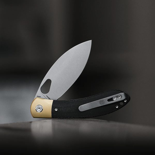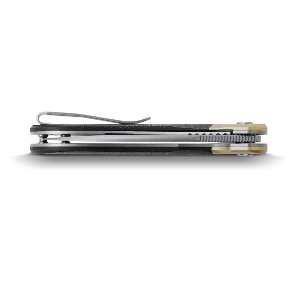 - Rękojeść: korpus ze stali nierdzewnej (linersy), okładki z micarty (black | czarne), klips do przenoszenia ze stali nierdzewnej (Tip-Up, right-carry | prawostronny), bolster z mosiądzu (brass)