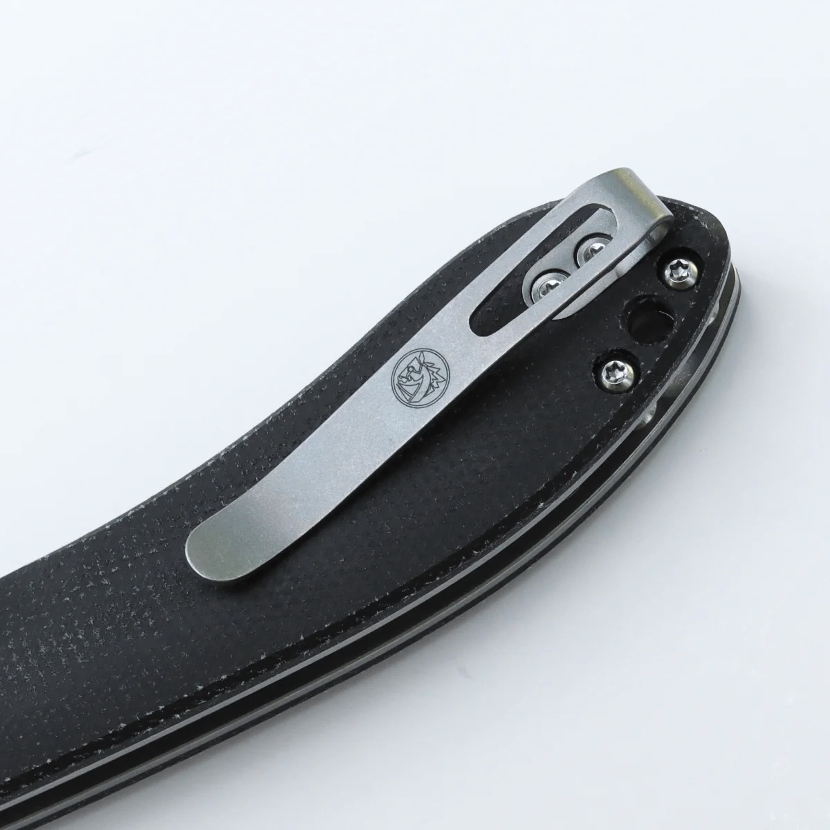 Stalowy klips mocujący umiejscowiony w tylnej części rękojeści zapewnia stabilne przenoszenie w kieszeni, zamocowanie w plecaku, sakwie, nerce itd. Klips wykonano ze stali nierdzewnej i zamontowano go w pozycji tip-up (wierzchołek ostrza skierowany do góry w momencie zaczepienia noża klipsem).