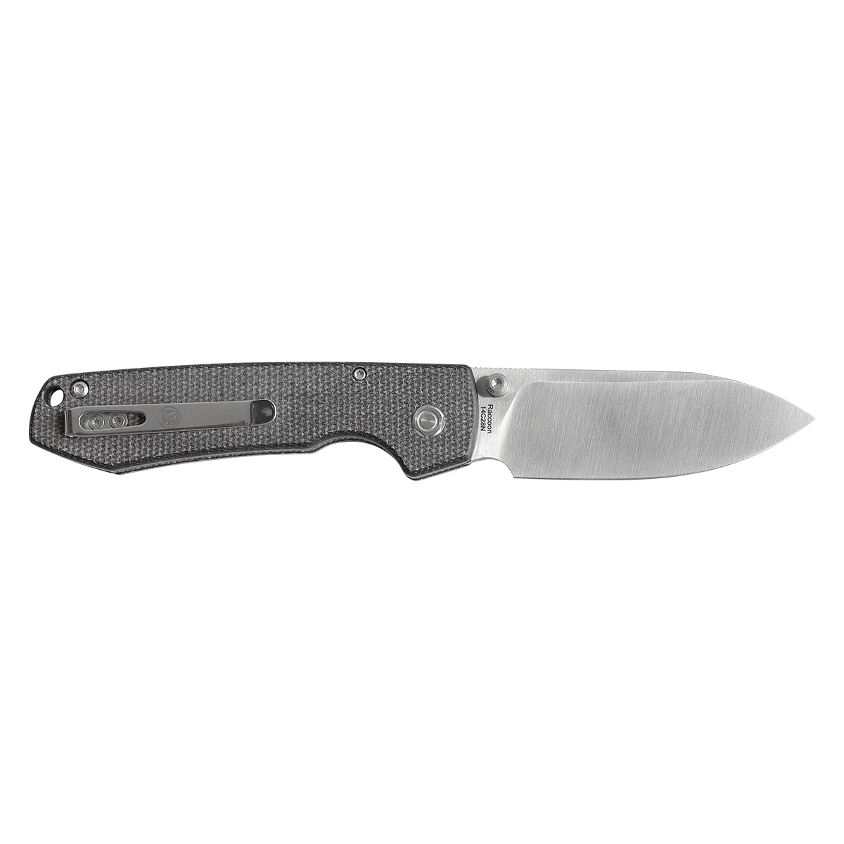 Vosteed Raccoon Button Lock Knife Satin 14C28N Black Micarta RC3SVM2
