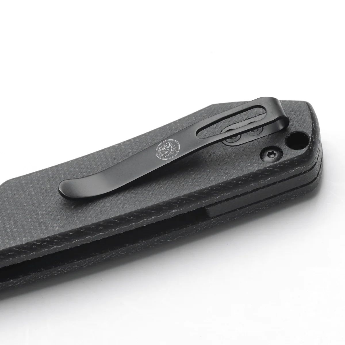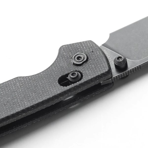 - Rękojeść: okładki z micarty (black | czarna) osadzone na stalowym korpusie (linersy), backspacer z micarty (black | czarna), klips do przenoszenia ze stali nierdzewnej (Tip-Up, reversible | obustronny)