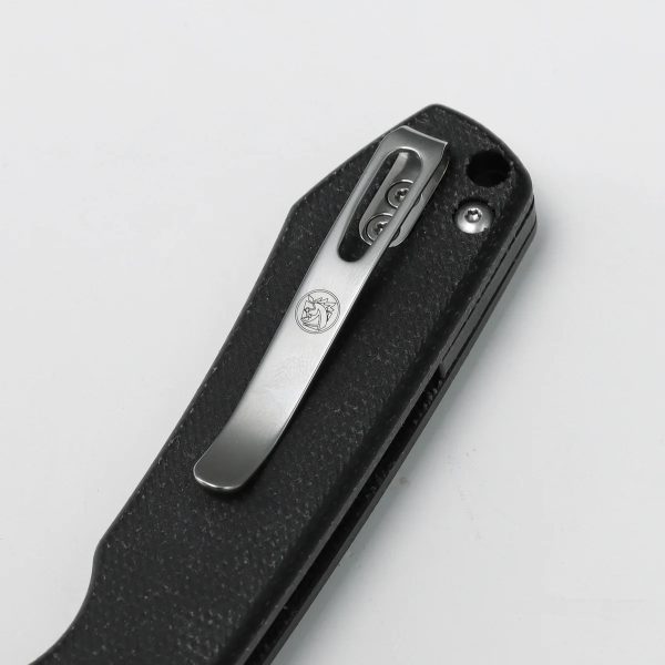 Stalowy klips mocujący umiejscowiony w tylnej części rękojeści zapewnia stabilne przenoszenie w kieszeni, zamocowanie w plecaku, sakwie, nerce itd. Klips wykonano ze stali nierdzewnej i zamontowano go w pozycji tip-up (wierzchołek ostrza skierowany do góry w momencie zaczepienia noża klipsem).