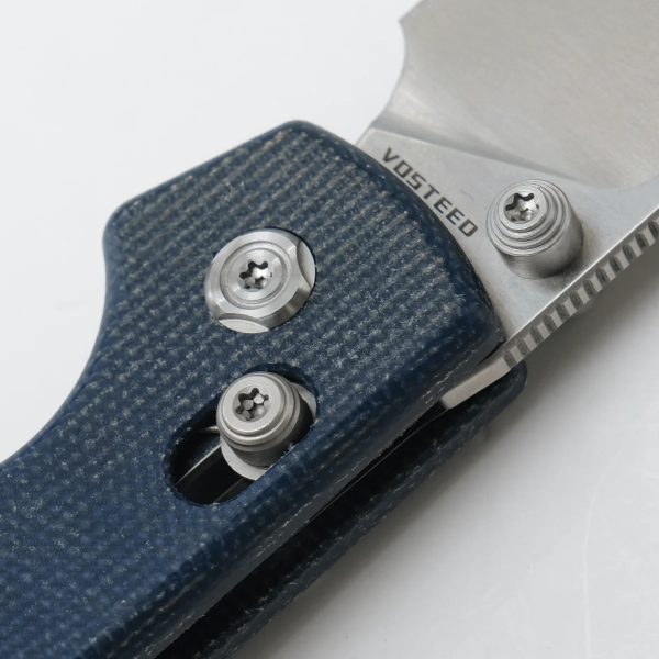 Vosteed Raccoon CB Crossbar Lock Knife Satin 14C28N Blue Micarta A0505