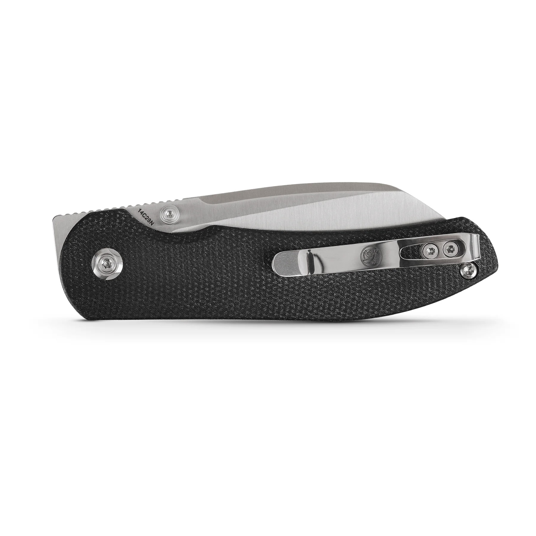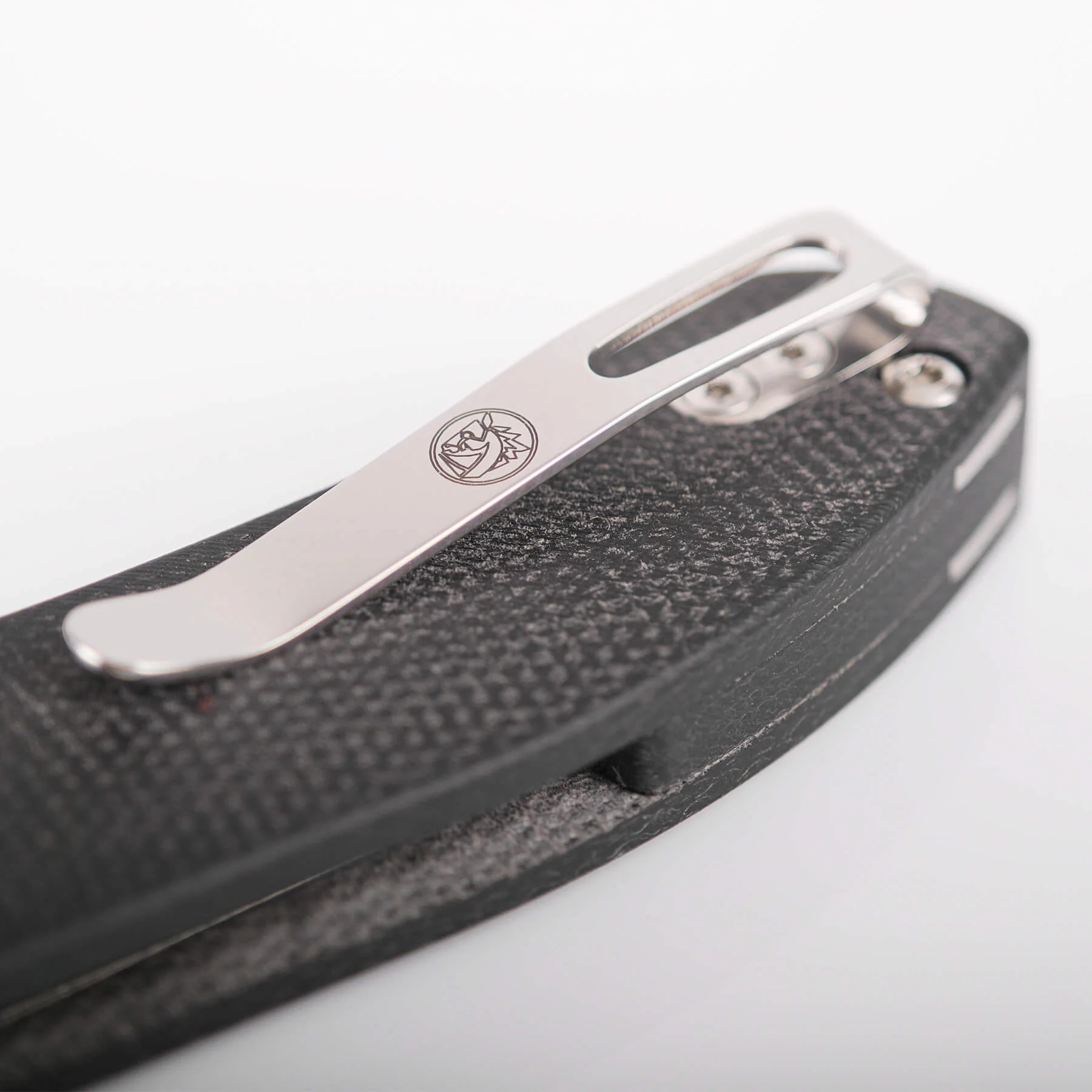 Stalowy klips mocujący umiejscowiony w tylnej części rękojeści zapewnia stabilne przenoszenie w kieszeni, zamocowanie w plecaku, sakwie, nerce itd. Klips wykonano ze stali nierdzewnej i zamontowano go w pozycji tip-up (wierzchołek ostrza skierowany do góry w momencie zaczepienia noża klipsem).