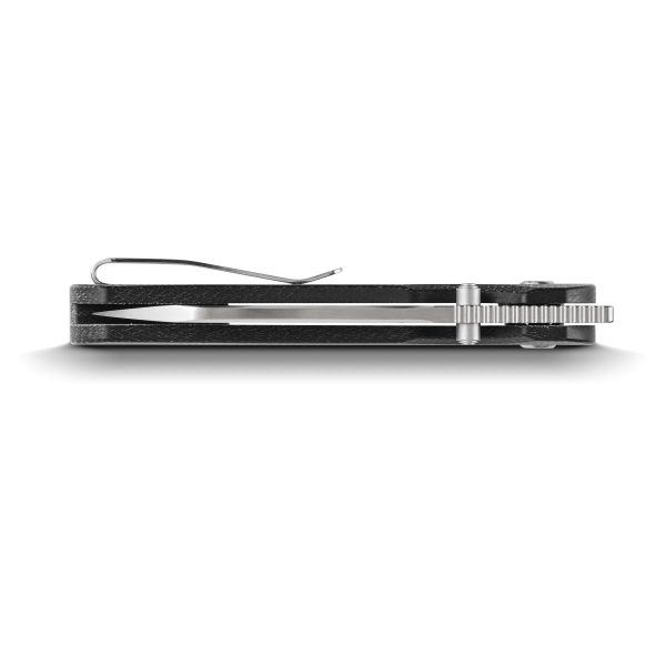 - Rękojeść: okładki z micarty (black | czarny) osadzone na stalowym korpusie (linersy), backspacer z micarty (black | czarna), klips do przenoszenia ze stali nierdzewnej (Tip-Up, right-carry | jednostronny, praworęczny)