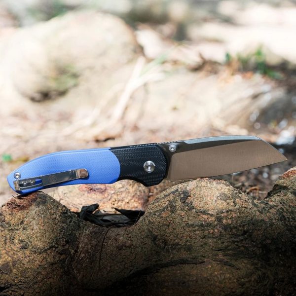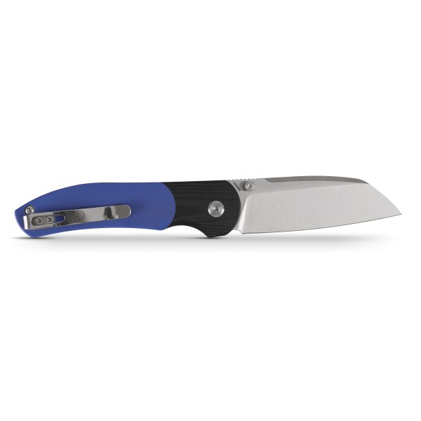 - Rękojeść: okładki z G10 (blue / black | połączenie niebieskiego z czarnym) osadzone na stalowym korpusie (linersy), backspacer z G10 (blue | niebieski), klips do przenoszenia ze stali nierdzewnej (Tip-Up, right-carry | jednostronny, praworęczny)