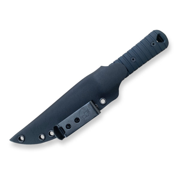 A slim, lined, kydex sheath, paired with a Tracker Dan clip, make for a variety of discreet carry options.