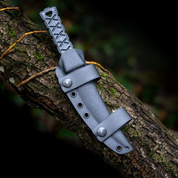 **EXTRA HOLES**: The sheath is equipped with 4 pass-through pins, through which a lanyard or paracord can be threaded, or attached to a belt in either a horizontal or vertical position, depending on the user’s preference.
