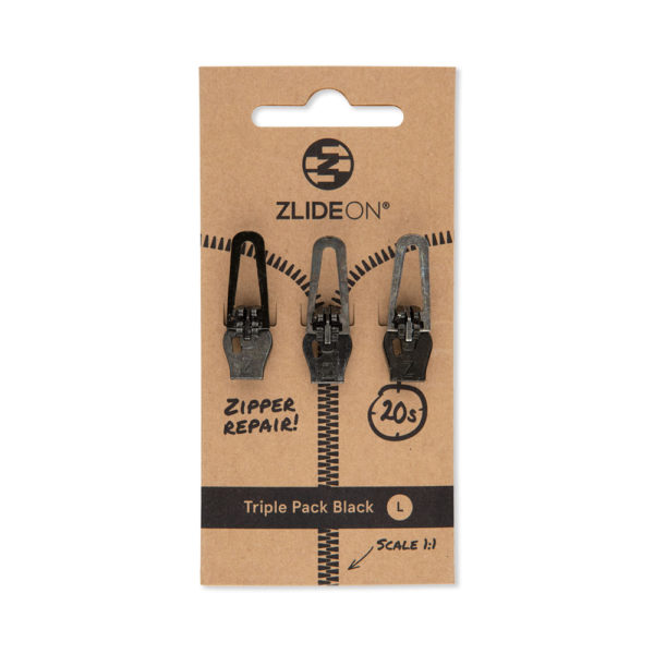 ZlideON L Triple Pack Black Zipper Repair has a simple and reliable design. It is made of zinc and steel, which guarantees its durability. The sliders are black and designed for dark zippers.