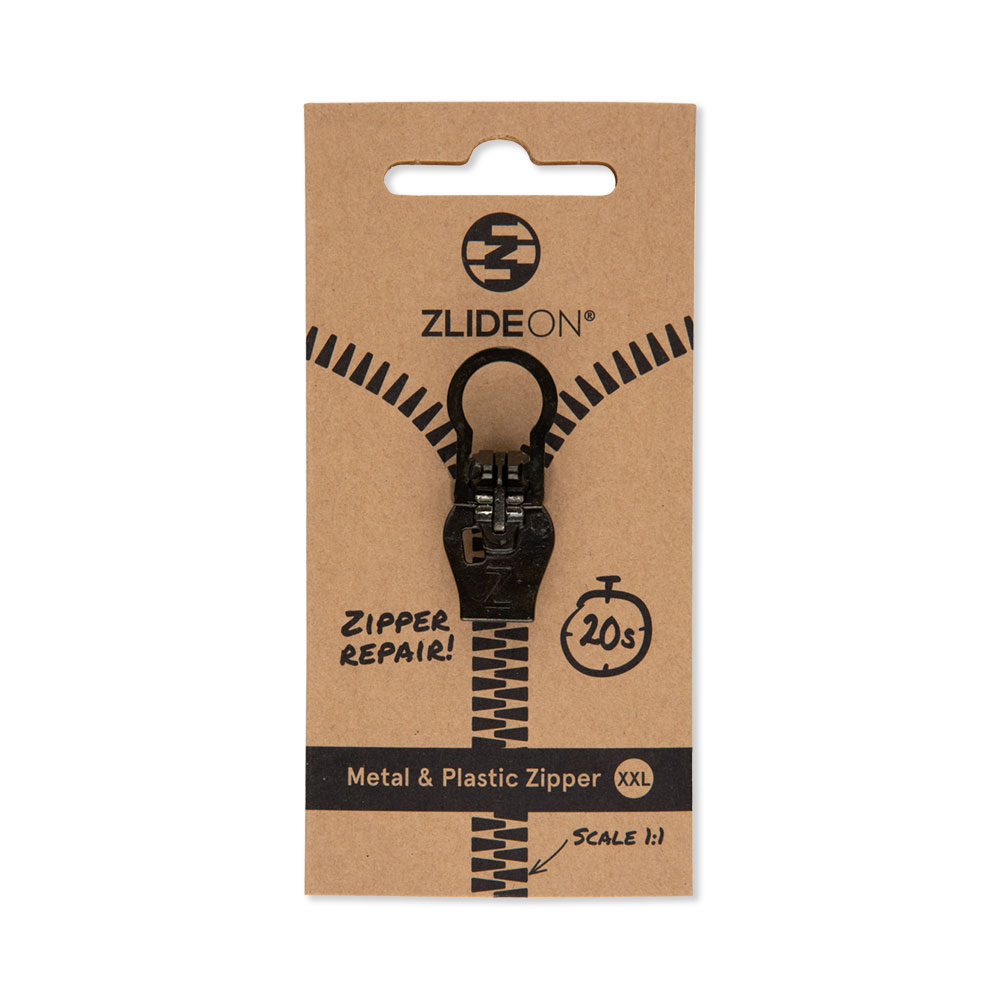 ZlideON XXL Normal Plastic & Metal Black 10A-1 Zipper Repair is a quick repair of your jacket, backpack, shoes or bag literally in 30 seconds. It is designed for standard plastic zippers in size XXL. Additional information on choosing the right slider can be found in the description below.